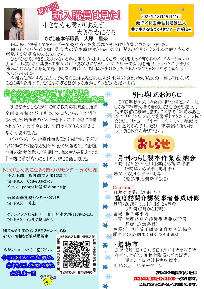 誰もがあたりまえに、けんかをしたり、泣いたり笑ったりしながらごちゃごちゃと暮らせる街を作ることが目的です。わら細エの介助では資格は問いません。